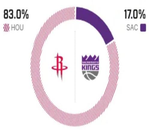 賽前,美媒ESPN對本場比賽進行了勝率預測,火箭隊勝率依舊高達83%,占據絕對上風,國王隊勝率則僅有可憐的17% ,還是不被看好。