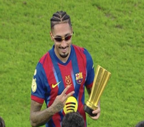 在巴薩與皇馬的這場較量中,上半場拉菲尼亞進球為巴薩打破僵局,維尼修斯一條龍破門,助皇馬將比分追平。之后兩隊中鋒萊萬、貢薩洛加西亞相繼進球,半場結(jié)束2-2平。下半場拉菲尼亞折射建功,打入制勝球,巴薩隊長德容染紅離場,巴薩3-2擊敗皇馬,成功衛(wèi)冕西超杯冠軍。