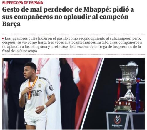 巴薩3-2皇馬實現衛冕。賽后,據《世界體育報》的報道稱,姆巴佩在賽后做出了一些不太友好的舉動。