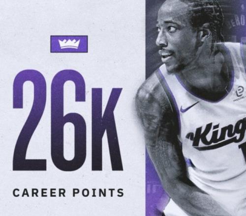 在國王對陣火箭的比賽中,德羅贊迎來生涯里程碑時刻。比賽開始不久他便拿到6分,這讓他的生涯常規(guī)賽總得分突破26000大關(guān),成為現(xiàn)役第六人!