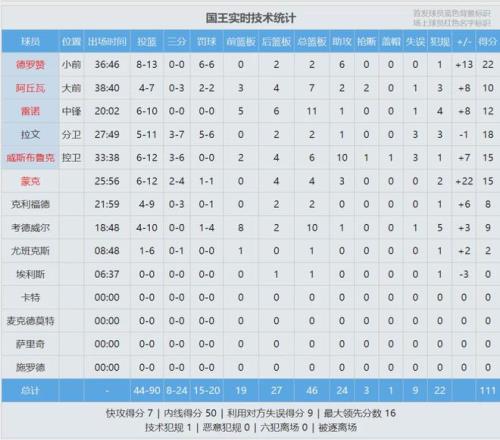 火箭末節崩盤,單節輸給國王11分。四節比分如下(火箭在前):23-22、25-29、28-27、22-33。此役過后,火箭22勝14負跌至西部第七,排名被24勝15負的太陽反超。國王結束7連敗,9勝30負升至西部倒數第二,鵜鶘9勝32負西部墊底。