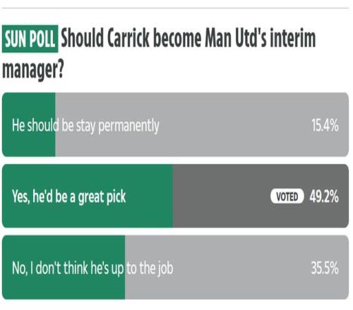 《太陽報》所做的調查顯示,球迷也對卡里克謹慎看好,接近50%的參與調查者認為,卡里克是曼聯臨時主教練的上佳人選。