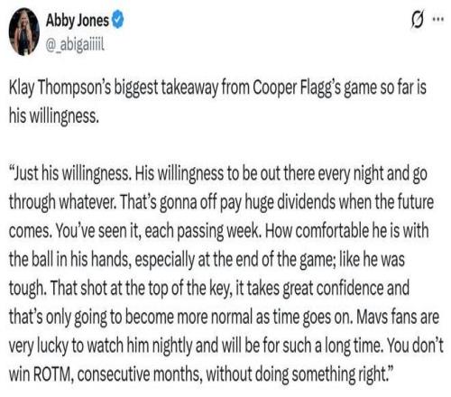 因此對于兩支球隊來說,比賽的勝負無關緊要,年輕球員的表現與成長才值得關注,尤其是擁有“美國之子”弗拉格的獨行俠。