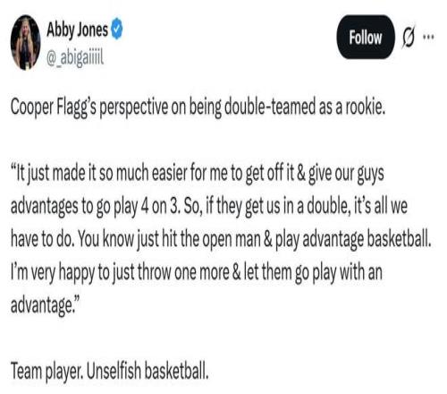 賽后談及自己作為新秀遭遇包夾時,弗拉格表示:“這反而讓我更容易解決問題,為隊友創造4打3的機會,我很樂意多傳一次球,讓隊友們在人數占優的情況下打出優勢籃球。”