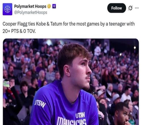 這是弗拉格本賽季第5次單場拿到20+得分且0失誤,成功追平科比和塔圖姆共同保持的青少年球員(13-19歲)紀錄。
