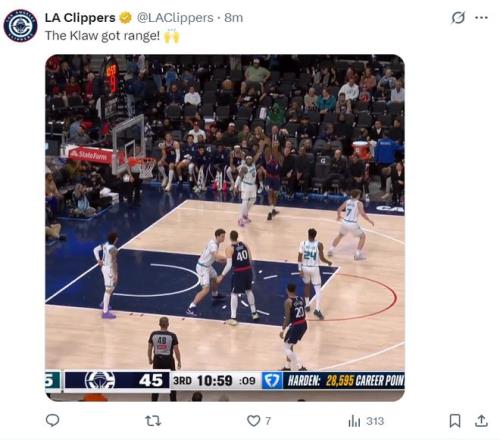 全場比賽小卡僅僅打31分鐘,19中11,三分9中5,拿到35分5籃板3助攻1失誤,命中率57.9%,三分命中率55.5%,真實(shí)命中率76.2%,正負(fù)值+8。過去的12場比賽小卡正負(fù)值+96快船第一。