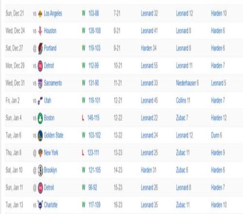 ESPN給出一項(xiàng)數(shù)據(jù),自19-20賽季,倫納德拿30+時(shí)快船60勝16負(fù)聯(lián)盟最佳,他也連續(xù)21場比賽拿到20+,距離生涯21場的紀(jì)錄只差1場,這項(xiàng)數(shù)據(jù)說明倫納德的身體狀態(tài)極佳。