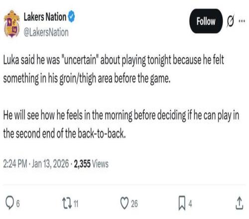 值得一提的是,賽后被問到賽前出戰狀態為何是不確定時,東契奇表示那是因為在比賽開始前,自己感到腹股溝和大腿區域有不適。
