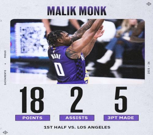 眾所周知蒙克本賽季在國王的陣容中已經不算主力,他此前被連續DNP了7場比賽,但對陣火箭一戰他拿到15分,此役面對老東家湖人他第二節的表現那叫一個炸裂,單節7中6+三分6中5+罰球1中1拿到18分1助攻,湖人替補4人半場合計只有4分。