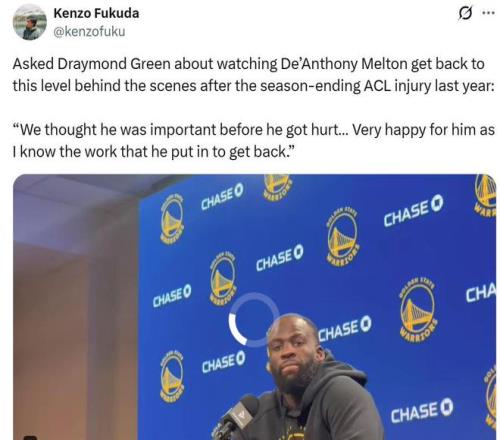 梅爾頓近期的表現也的確配得上這樣的夸獎,要知道他僅身背2年682萬美元的底薪,其中還包括部分聯盟對于老將球員的補貼,結果卻頻頻扮演奇兵角色,并且正在成為勇士隊的贏球風向標。