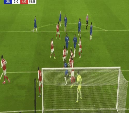 第57分鐘,阿森納本方半場被搶斷,內托下底傳中,剛剛替補登場的加納喬后點冷靜射門,切爾西扳回一城。