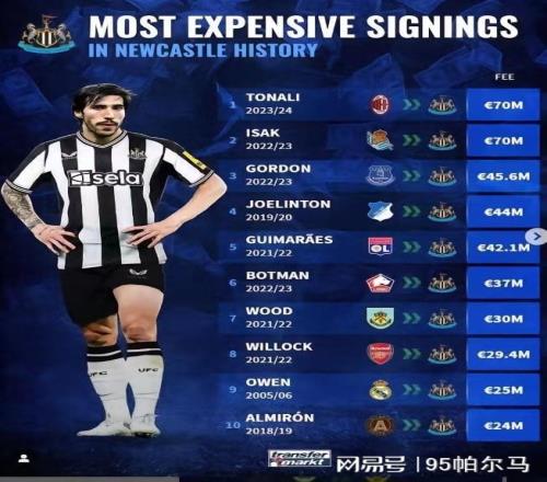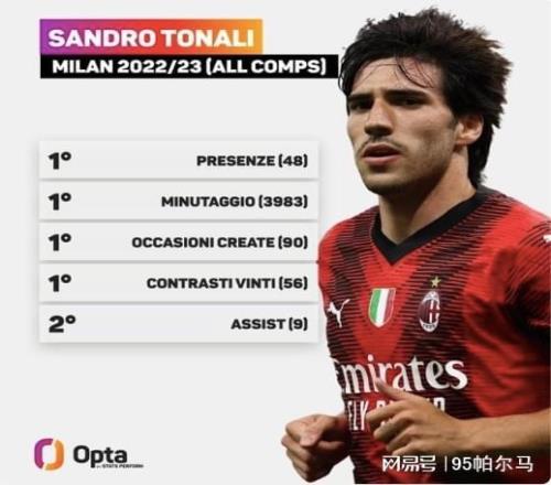托納利并不是無緣無故地成為紐卡斯爾的偶像或者切爾西的獵物,在登陸英超之前的一個賽季中,他為AC米蘭在各項賽事中出場48次,累計登場3983分鐘,創造機會90次,成功搶斷56次,三項數據均是AC米蘭隊內的NO.1,如此托納利成為意大利球員歷史轉會標王,是建立在實力使然的基礎上,并不是財大氣粗的紐卡斯爾花錢不眨眼。