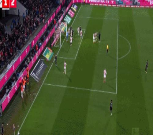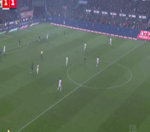 上半時補時階段,拜仁快速回應,站出來的正是前面剛失誤導致丟球的格納布里,拜仁后場快攻轉移右側,奧利斯插上接球突入禁區橫傳中路,格納布里接球直接往前一挑人球分過擺脫防守,小角度大力抽射,皮球直入球門近端死角,拜仁半場結束前1:1扳平比分。易邊再戰拜仁繼續加強進攻,第53分鐘,格納布里插上禁區左側獲得小角度不錯的機會,只是他凌空掃射踢呲了錯失良機。2分鐘后科隆這邊反擊也制造閃擊,只是卡明斯基無法擺脫韓國球員金玟哉,最后被金玟哉將球斷走。